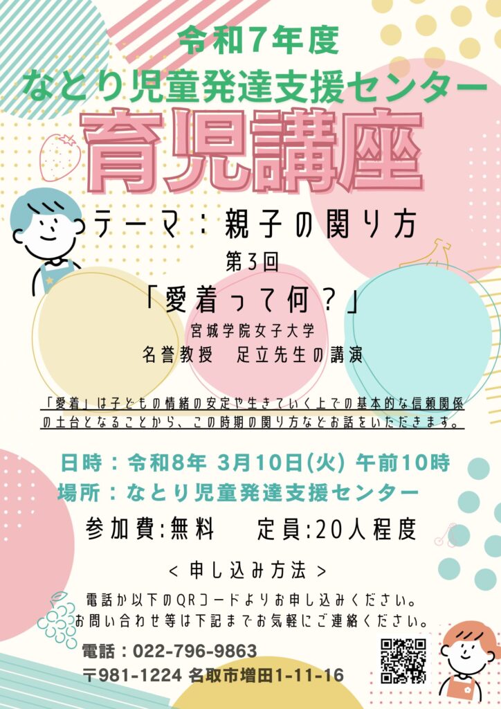 子どもの心の安定や、人との信頼関係の土台となる「愛着」について学ぶ育児講座です。